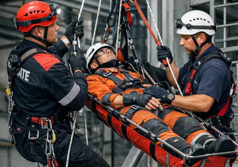 Prestamos serviços especializados de Resgate Técnico Industrial, atuando de forma planejada, segura e conforme as Normas Regulamentadoras e a NBR 16710. Nossas operações abrangem resgates em altura e em espaços confinados, com equipes treinadas, equipamentos certificados e procedimentos rigorosos de gestão de risco. Atuamos de forma preventiva e emergencial, garantindo resposta rápida, preservação da vida e total conformidade legal em ambientes industriais complexos.